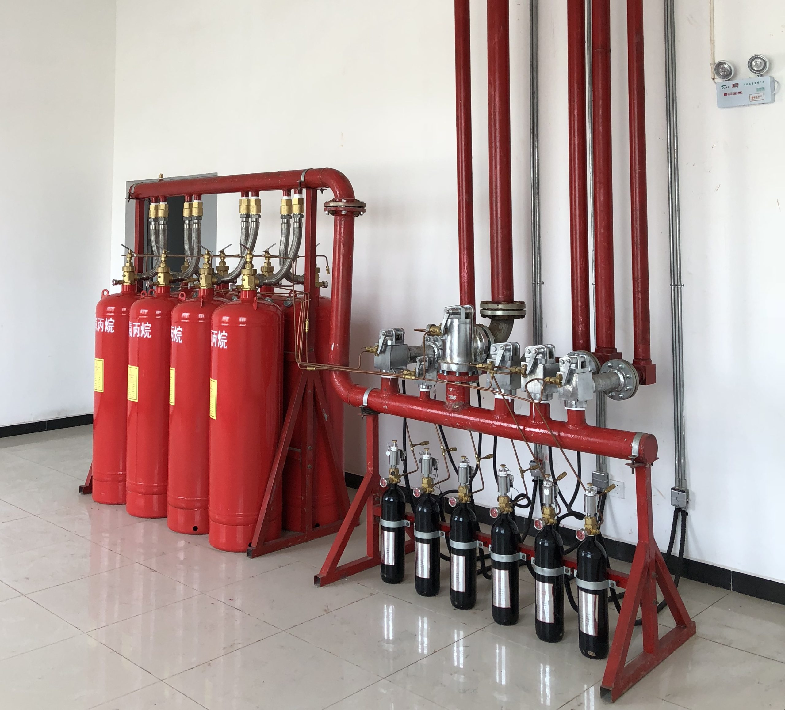 通过管道网络将灭火剂输送至多个防护区的集中式消防解决方案